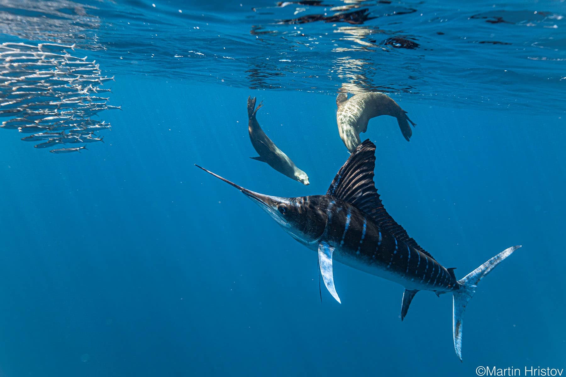 Six days going to sea weather condition permitting. Searching for Striped Marlin predation, competition with Brutus whale and the bully California Seal.