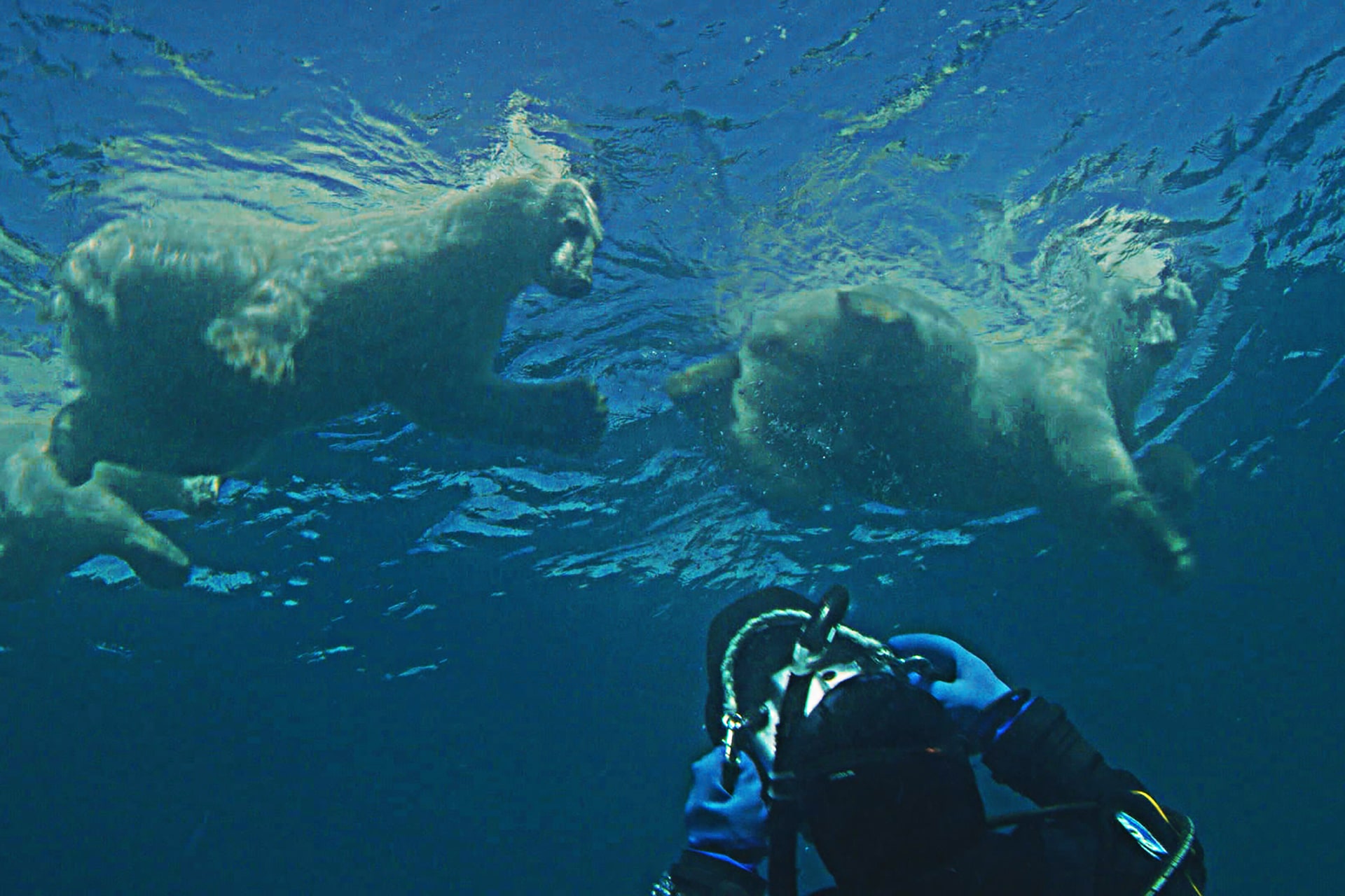 the vessel and search for polar bear family swimming. On every dive, only one guest will be in the water while Adam and Amos guide, protect and film the guest in the water. Guests alternate the order of getting in the water.